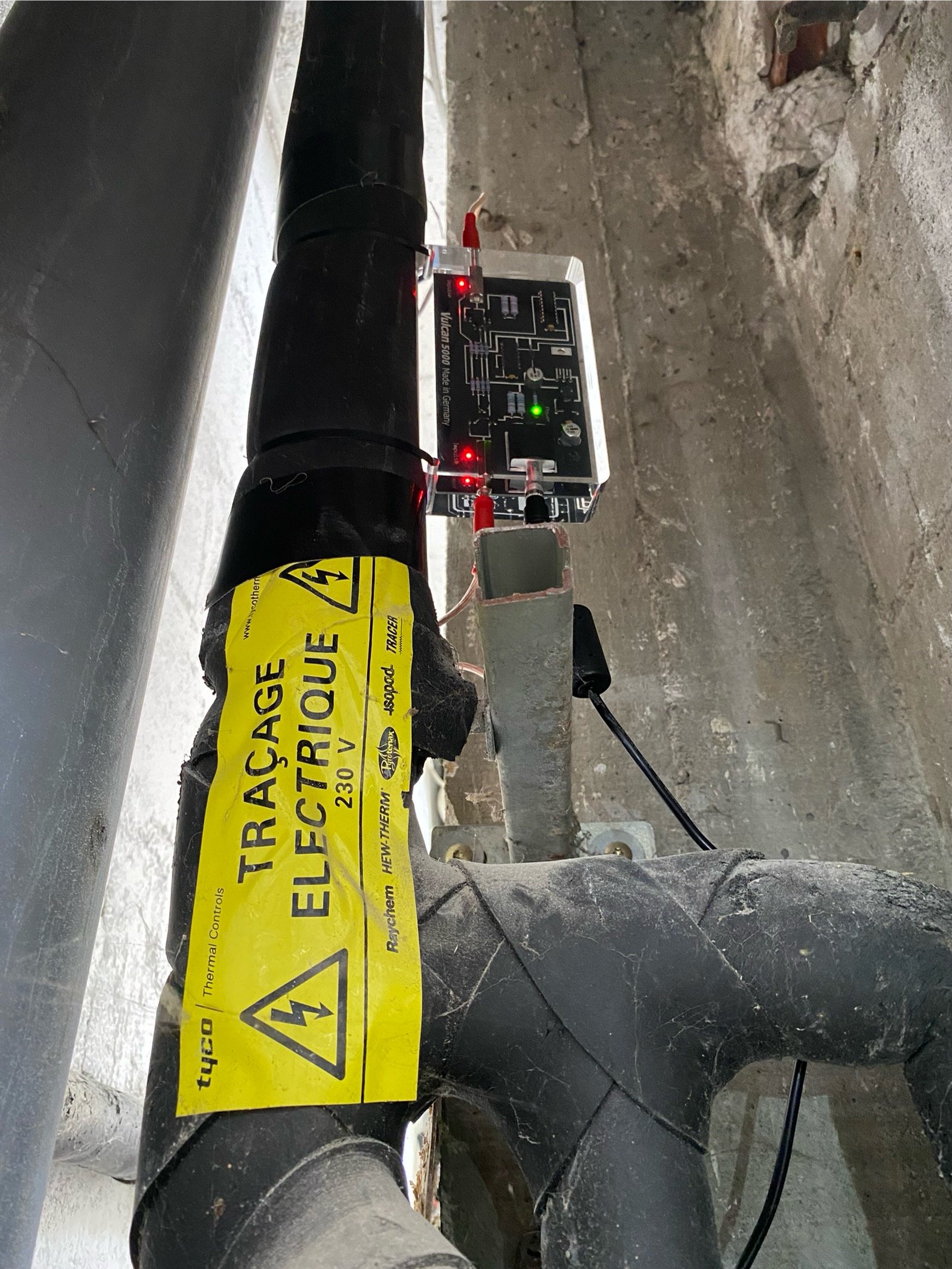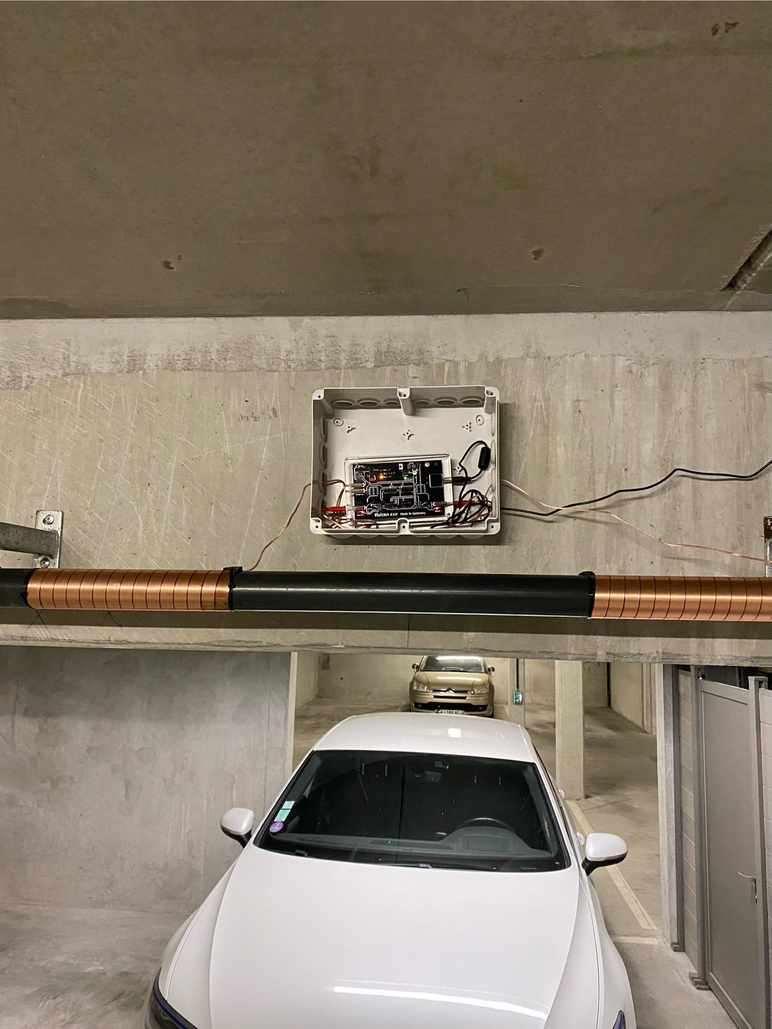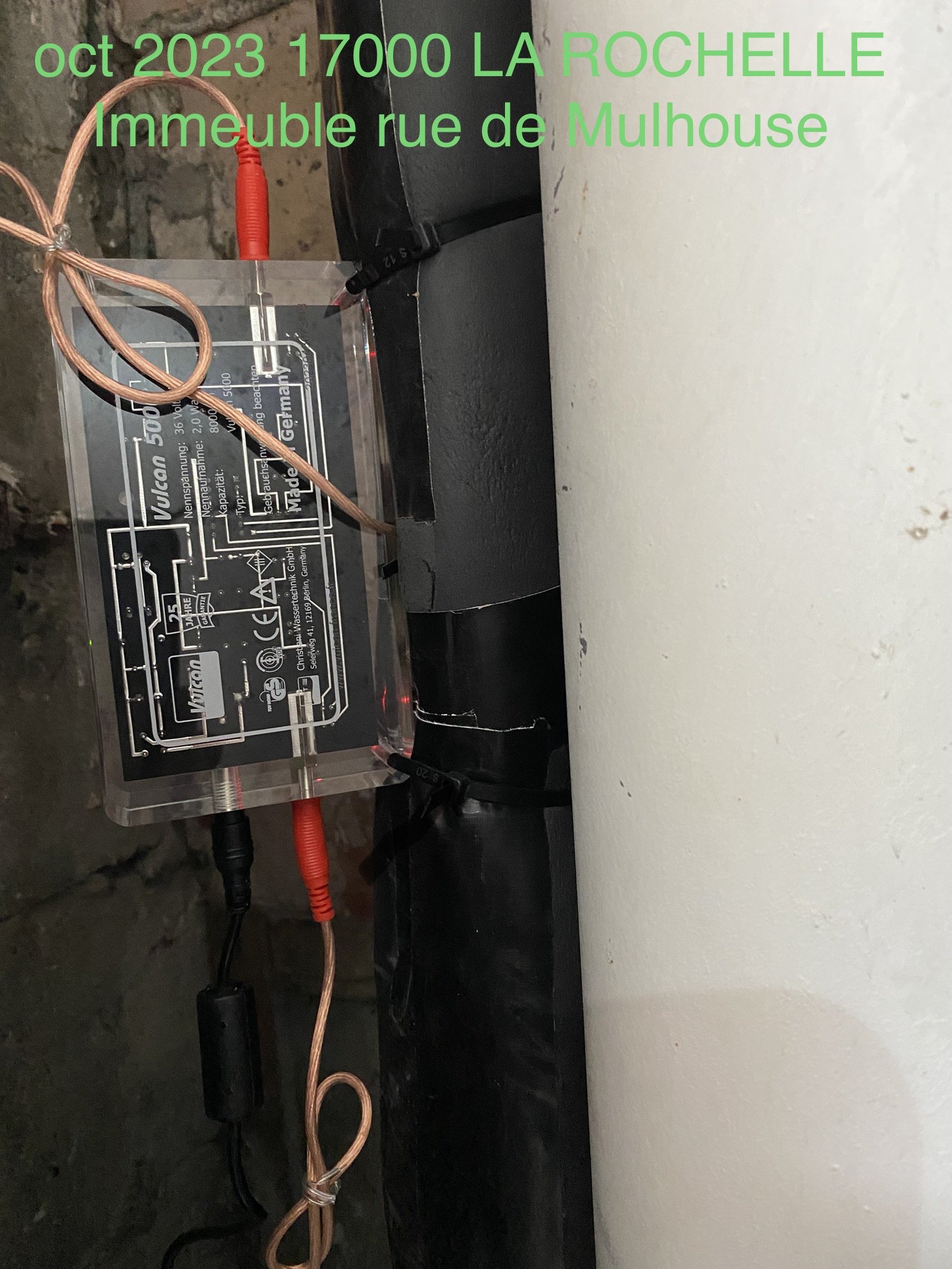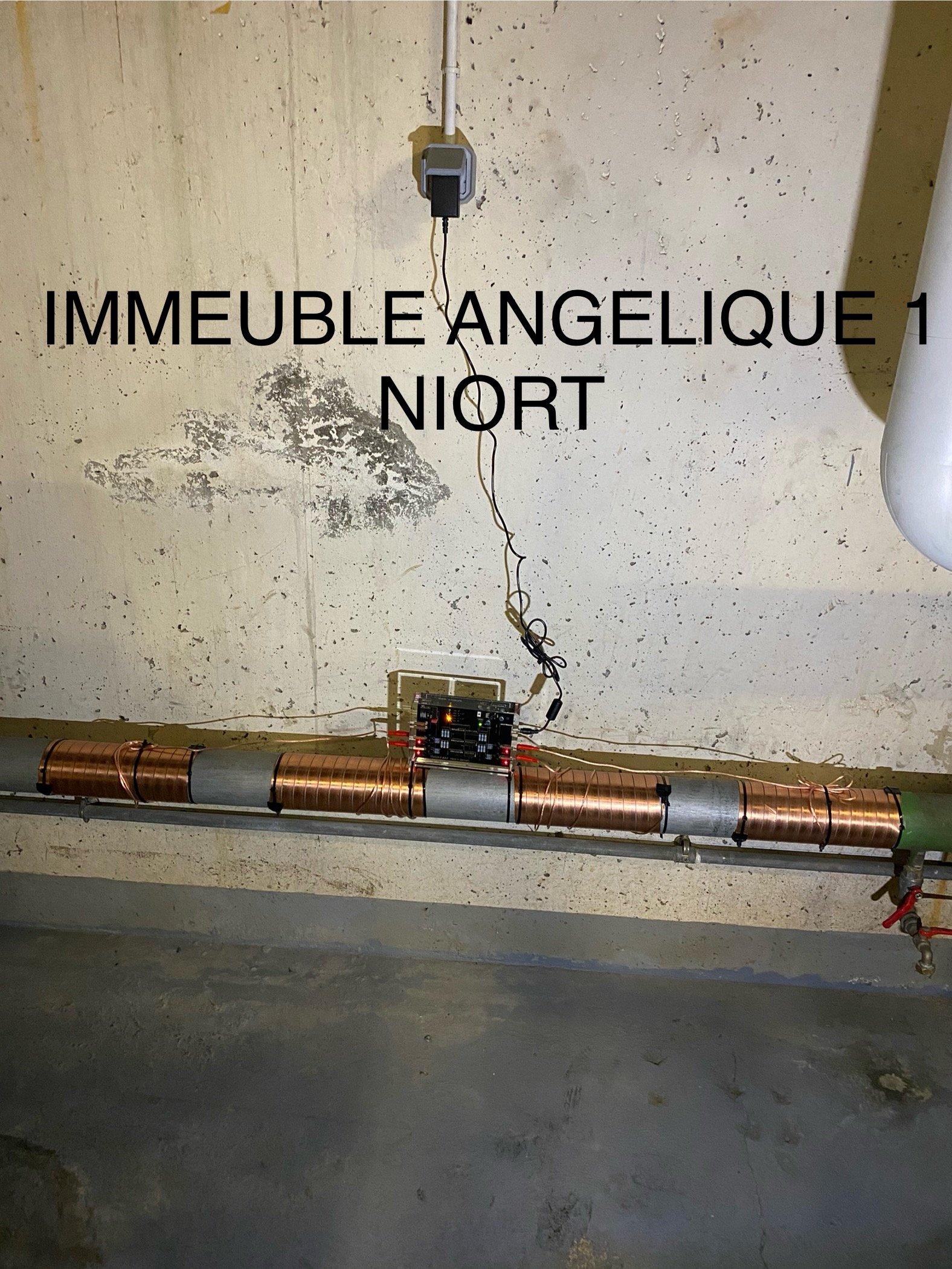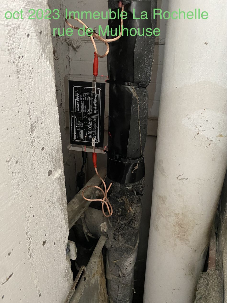 Vues en situations réelles de l’installation du boîtier adoucisseur d’eau Vulcan en multi-propriété.