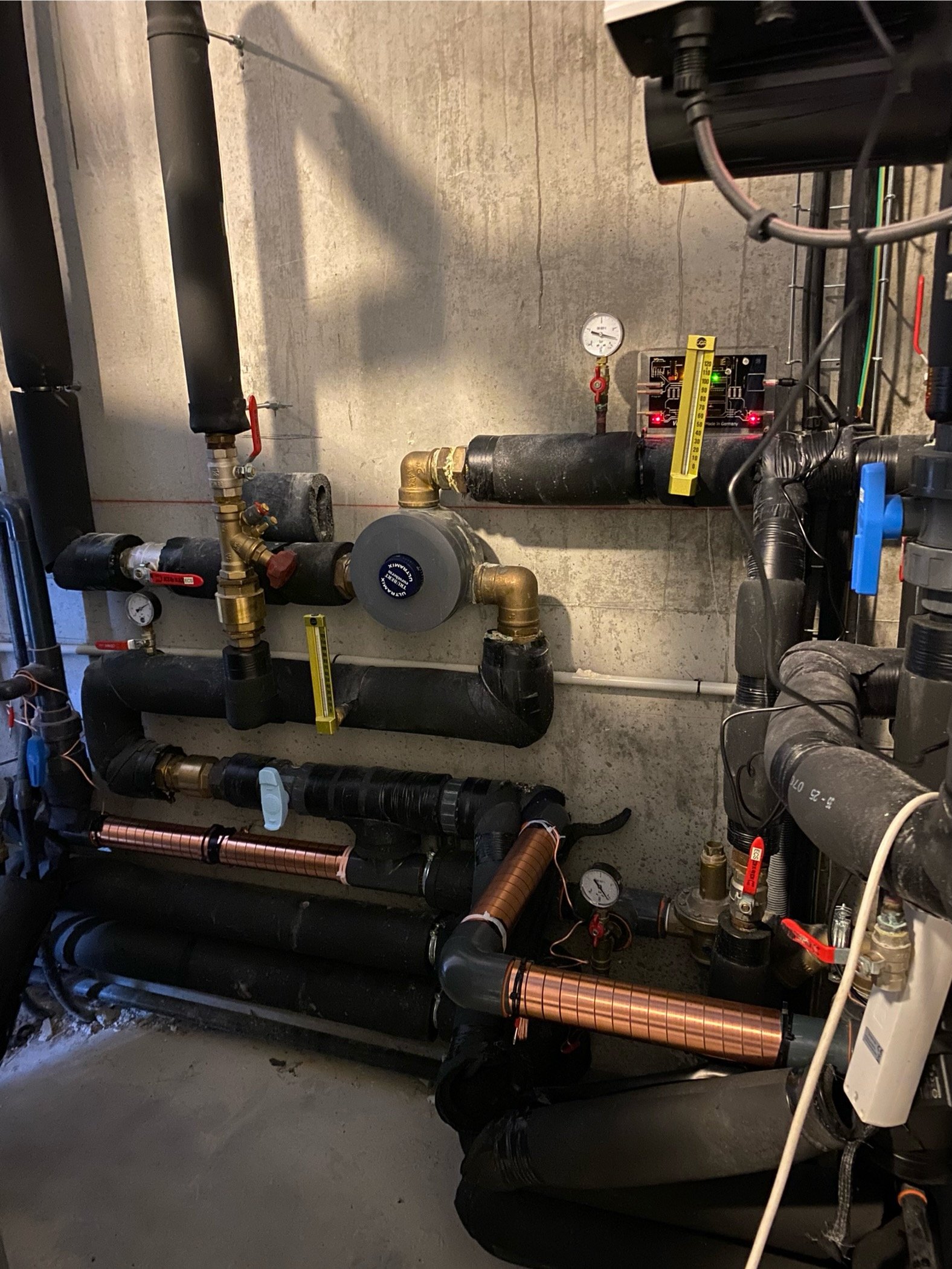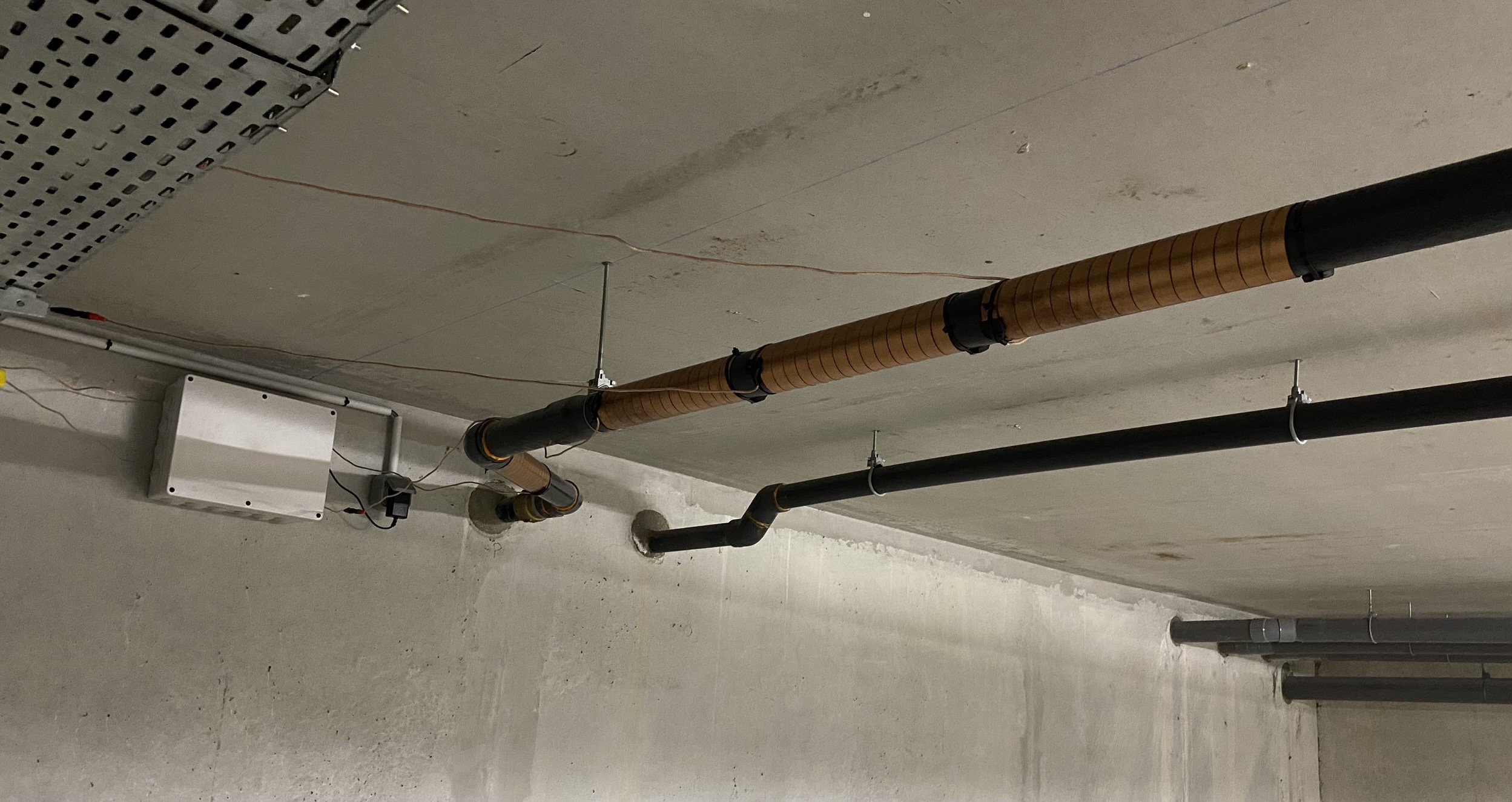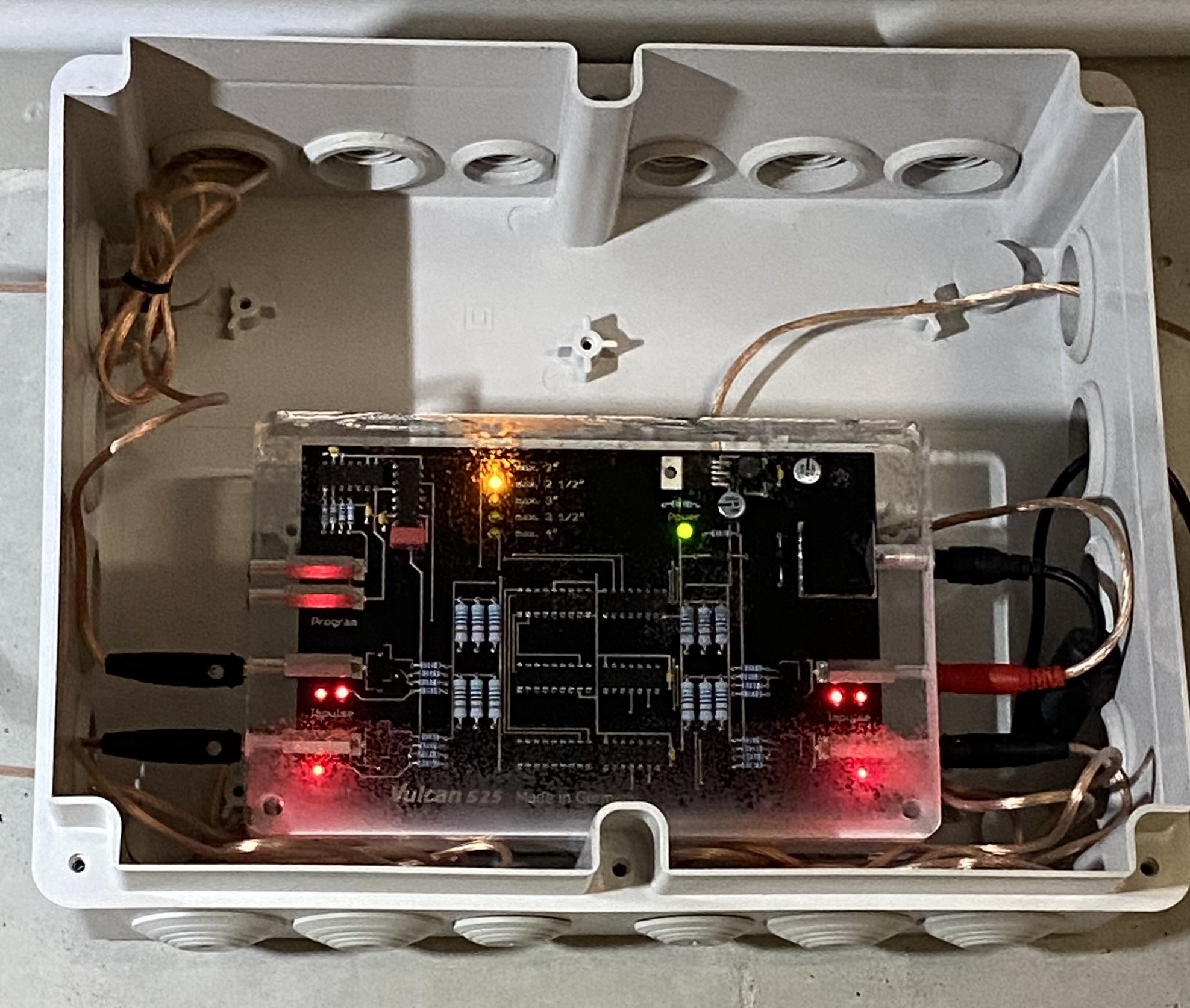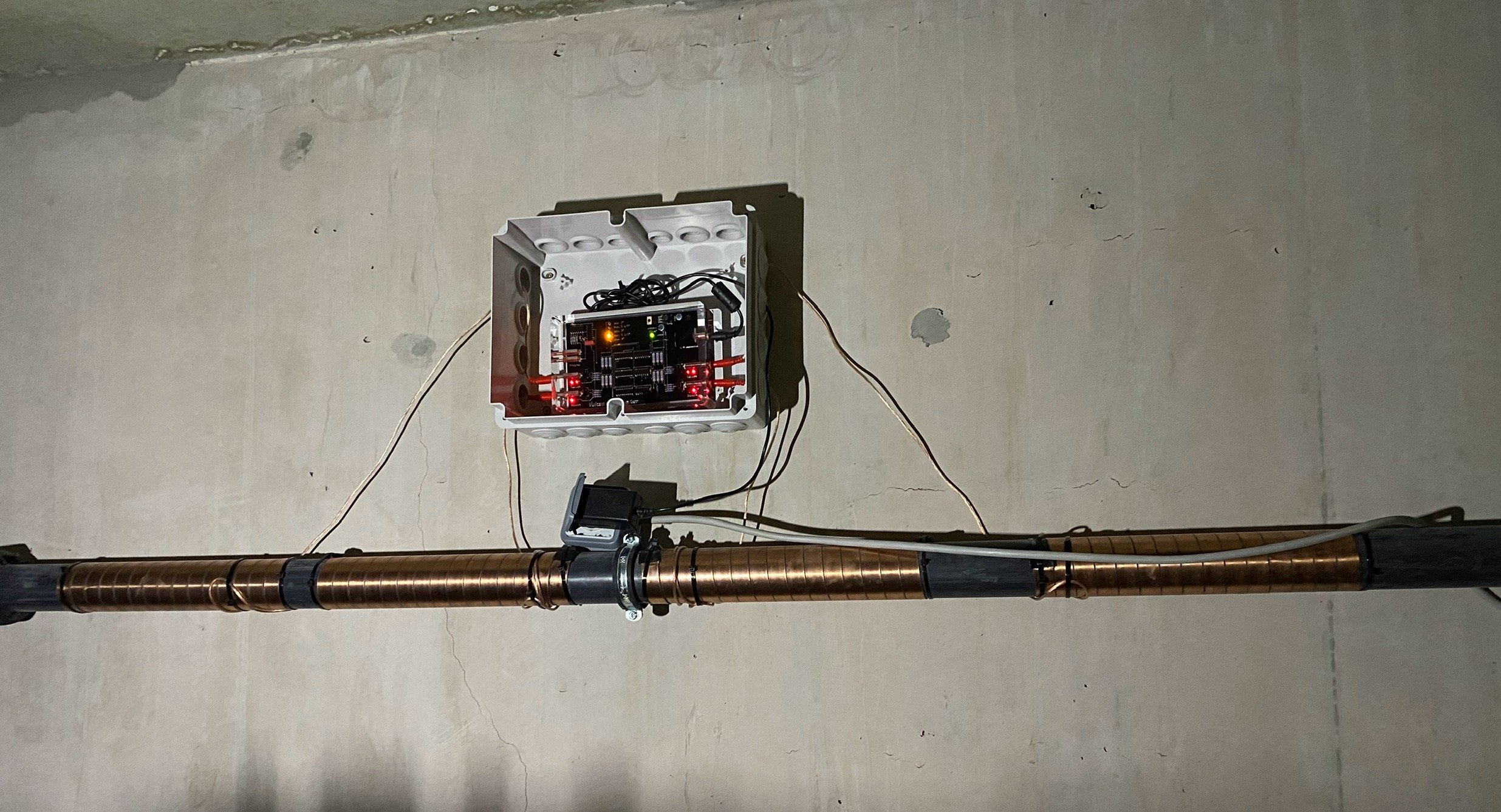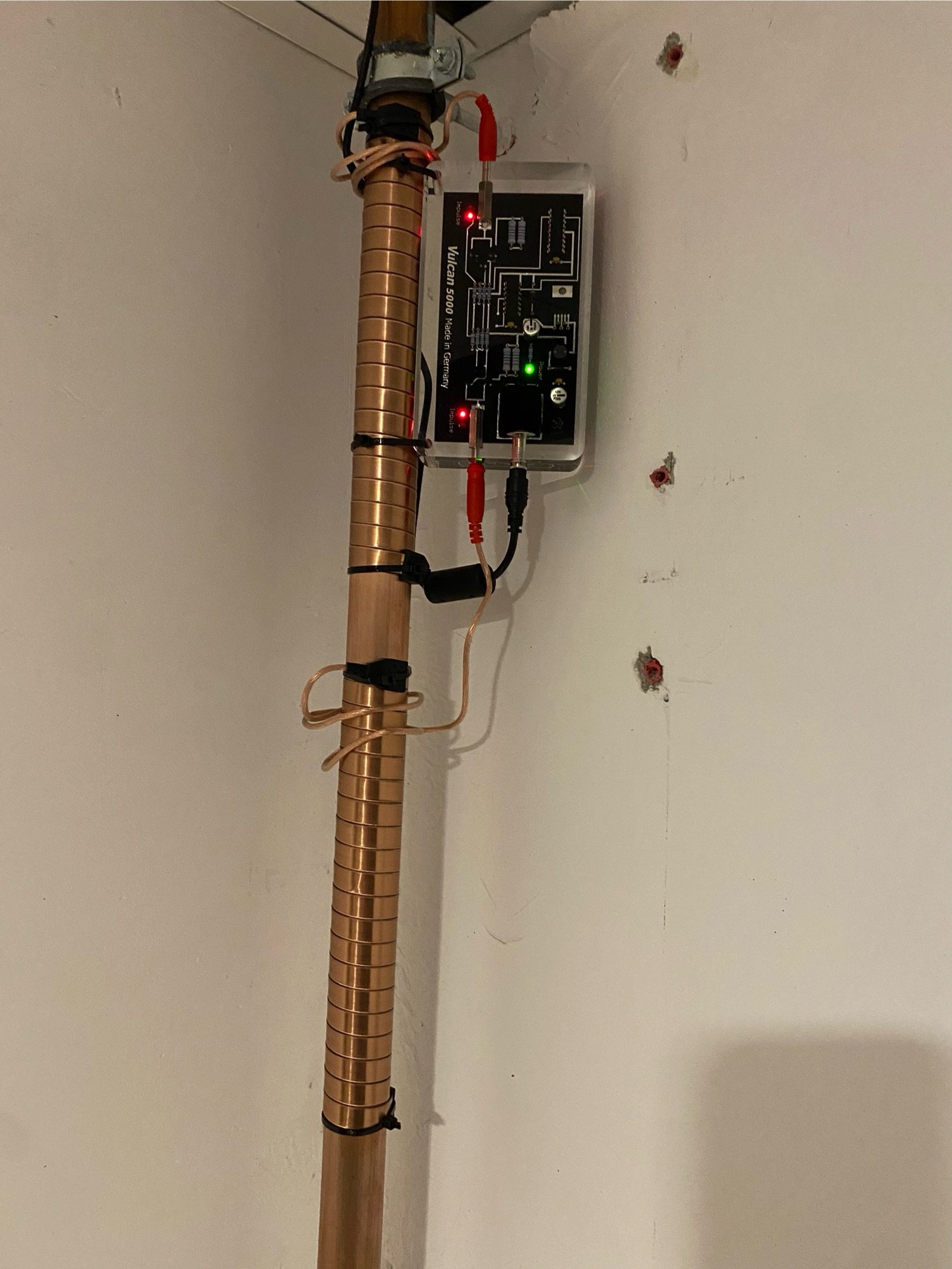 Vues en situations réelles de l’installation du boîtier adoucisseur d’eau Vulcan en multi-propriété.